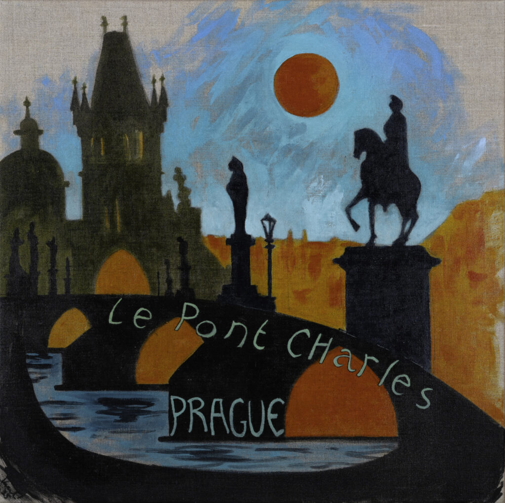 „Karlův most ve švihném stylu Toulouse-Lautreca – originál, který dává Praze esprit pařížských plakátů.“